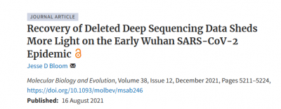 * Recovery of Deleted Deep Sequencing Data Sheds More Light on the Early Wuhan SARS-CoV-2 Epidemic . Recuperación de las secuencias borradas contribuye a aclarar la epidemia temprana en Wuhan.