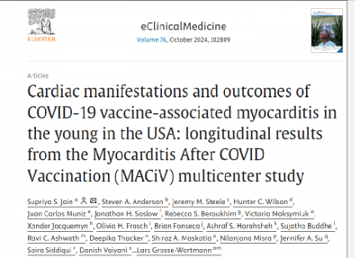 - Cardiac manifestations and outcomes of COVID-19 vaccine-associated myocarditis in the young in the USA: longitudinal results from the Myocarditis After COVID Vaccination (MACiV) multicenter study, Manifestaciones cardíacas y resultados de la miocarditis asociada a la vacuna COVID-19 en jóvenes en EE. UU.: resultados longitudinales del estudio multicéntrico Miocarditis después de la vacunación COVID (MACiV). .
