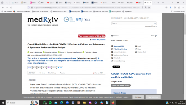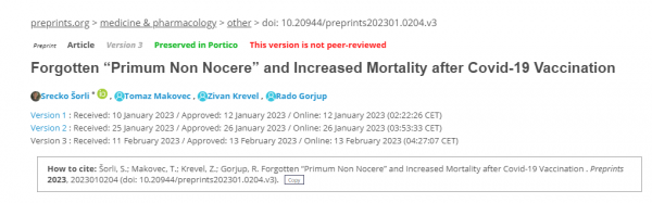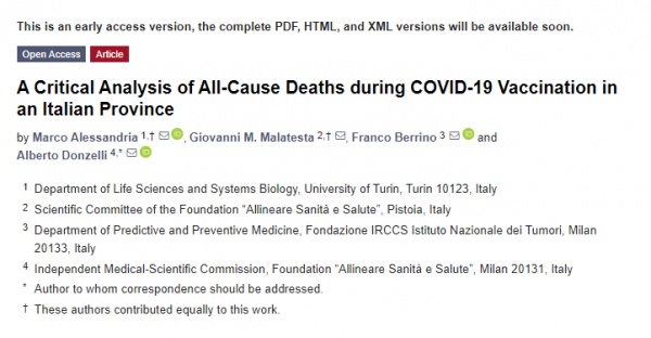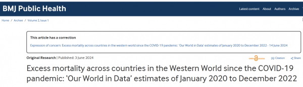 Análisis de los datos de la pagina respaldada por la Universidad John's Hopkins “ Our World in Data” publicado como pre-print. Su análisis estadístico concluye que: hay una asociación causal entre las vacunaciones y el exceso de mortalidad registrado en los últimos 3 años. Una mortalidad que es mayor que la mortalidad directamente ocasionada por la COVID desde el inicio de la Pandemia. A esto añaden que sus cálculos establecen que la mortalidad por las vacunas y vacunas genéticas anti-COVID es mayor que la mortalidad asociada a COVID.Leer mas... .