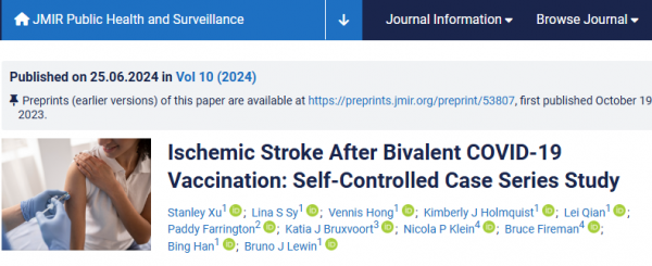 - Ischemic Stroke After Bivalent COVID-19 Vaccination: Self-Controlled Case Series Study Accidente cerebrovascular isquémico después de la vacunación bivalente contra la COVID-19: estudio de una serie de casos autocontrolados .