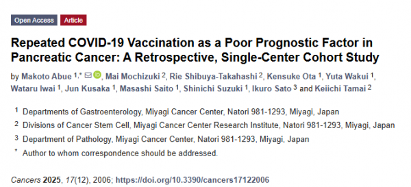 - Repeated COVID-19 Vaccination as a Poor Prognostic Factor in Pancreatic Cancer: A Retrospective, Single-Center Cohort Study. Vacunación repetida contra el COVID-19 como factor de mal pronóstico en el cáncer de páncreas: un estudio de cohorte retrospectivo de un solo centro..