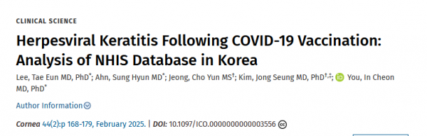 - Herpesviral Keratitis Following COVID-19 Vaccination: Analysis of NHIS Database in KoreaHerpesviral Keratitis tras la vacunación COVID-19: Análisis de la base de datos NHIS en Corea. .