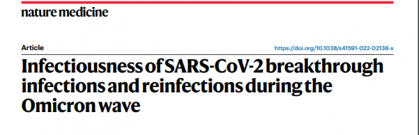 * Infectiousness_of_SARS-CoV-2_breakthrough_infections and reinfections during the Omicron wave. Infectividad de los infectados por SARS-CoV despues de la vacunación y de infecciones previas.