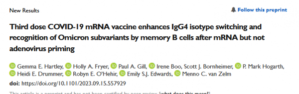 En este estudio, se sigue a 1745 trabajadores de la salud en Suiza durante varios meses para ver cómo su estado de vacunación afectaba sus posibilidades de contraer enfermedades de tipo gripal y recibir la baja laboral . El estudio encontró que aquellos que recibieron recientemente un refuerzo de COVID-19 tenían más probabilidades de reportar síntomas y tomar licencia por enfermedad. Por el contrario, las personas que recibieron la vacuna contra la gripe estacional tenían menos probabilidades de reportar síntomas o faltar al trabajo. Estos hallazgos sugieren que los refuerzos de COVID-19 pueden no ofrecer beneficios claros a corto plazo en un entorno pospandémico, e incluso pueden aumentar el riesgo de enfermedad a corto plazo. Esto debe cuestionar la utilización de vacunas de refuerzo frente a la COVID-19 . .